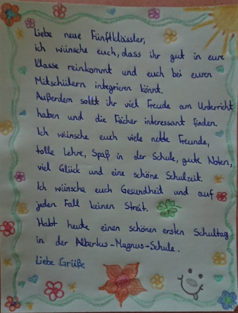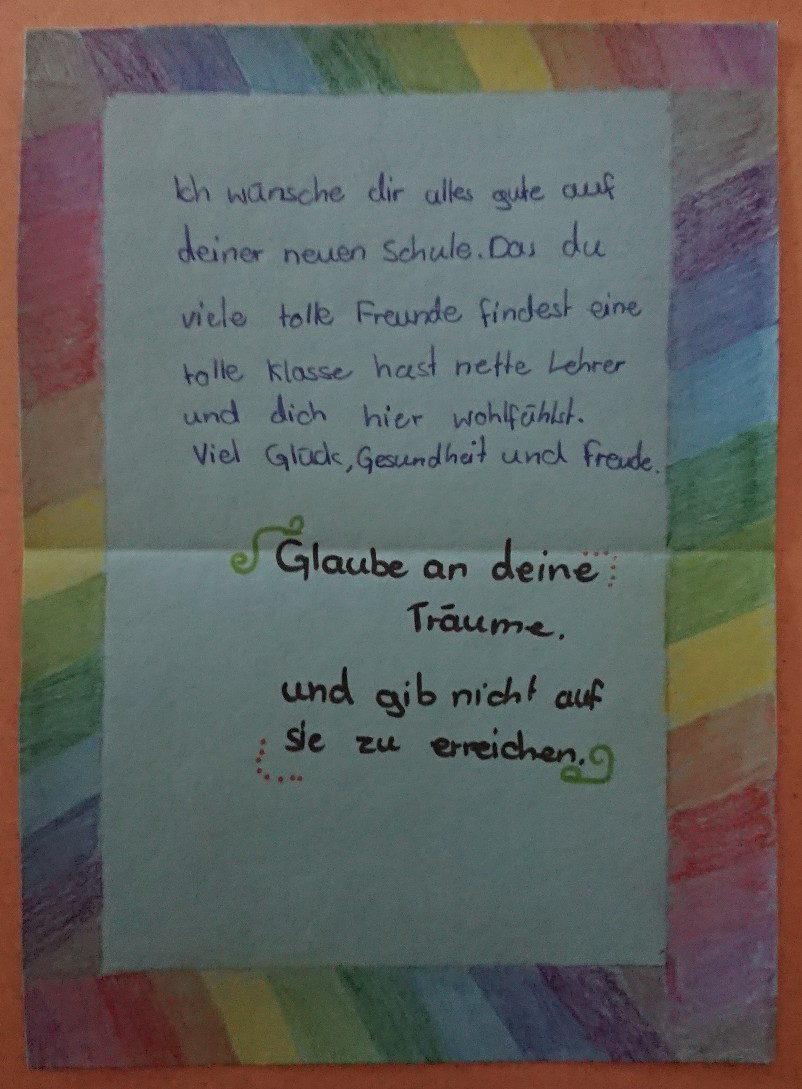Aktuell: Willkommensbriefe aus der 6. Klasse – gestaltet für unsere neuen Fünftklässler.